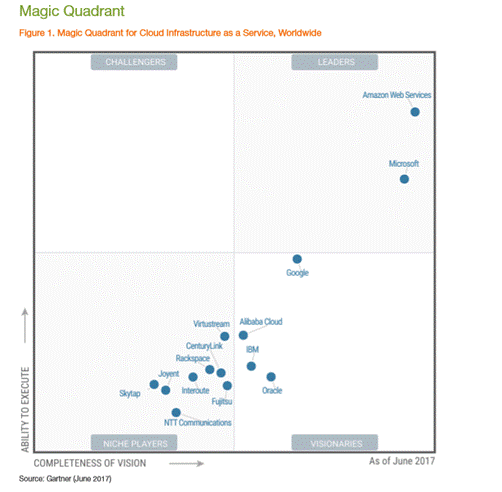 日前,国际知名调研机构Gartner公布了2017年全球云计算IaaS魔力象限,阿里云跻身全球前四名,排在阿里云前面的是AWS、微软和Google。报告显示,阿里云处于魔力象限的Visionaries...
