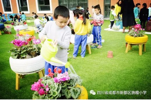 阳光下,有的孩子脸上已经闪耀着晶莹的汗滴,但没有一个孩子叫苦叫累,脸上满是笑容。在老师的帮助下,孩子们在每片土壤里都种下了植物,鲜花,多肉,蔬菜,种子,每一片土地上都有孩子们的努力成果。