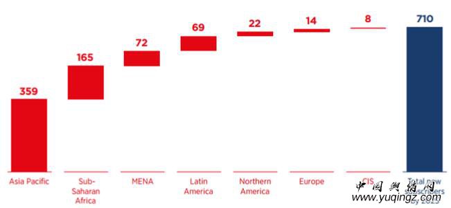 未来七年全球市场移动互联网用户新增人数