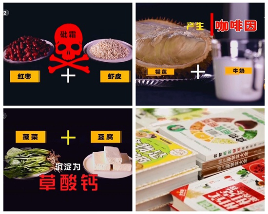 图为央视315晚会曝光多款“食物相克”的谣言和出版物