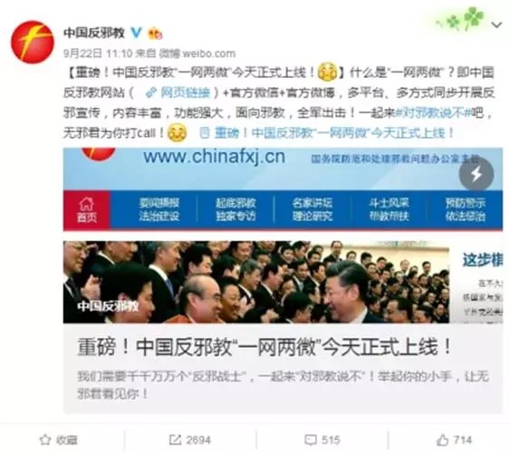 中国反邪教“一网两微”上线 形成反邪宣传阵营