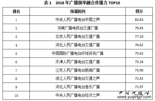 综合广播收听率、网站、微博、微信、聚合新闻平台、音频客户端、广播自建客户端等传播情况,融合传播力排名前10位的广播频率见下表: