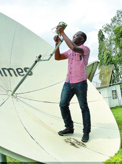 四达时代的坦桑尼亚工程师正在调试信号接收器。四达时代供图