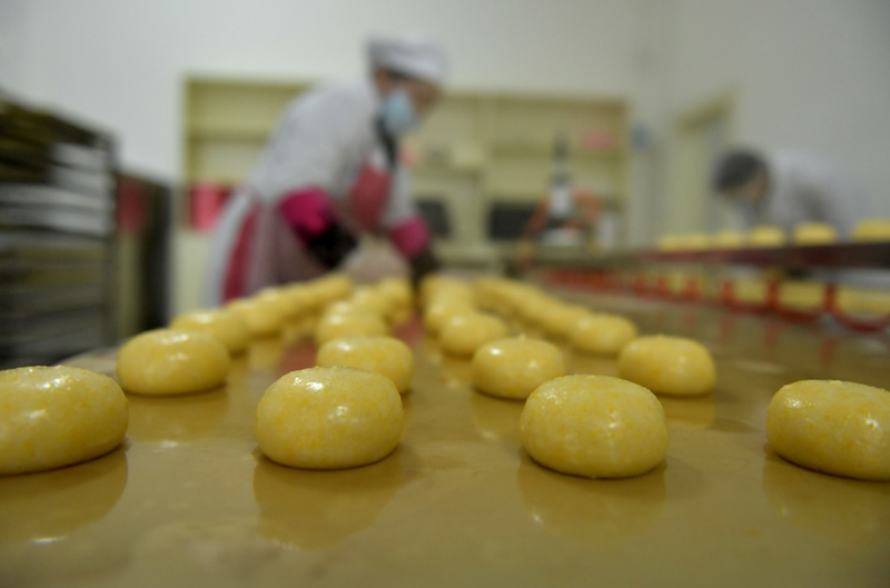 1月9日,在湖北省恩施土家族苗族自治州宣恩县万寨乡伍家台村,工人在摆放糍粑。