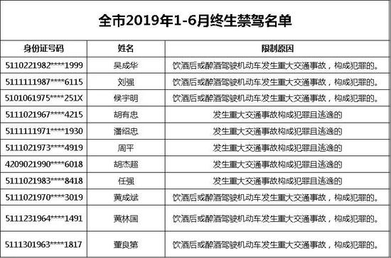 6月28日,四川省公安厅交警总队公布了今年1—6月终生禁驾名单,全省共有303名驾驶人被吊销机动车驾驶证且终生禁驾。其中,中国舆情网,乐山共有11名驾驶员。