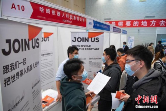 3月17日下午,清华大学举行2021届毕业生就业洽谈会。图为学生与招聘单位进行交流。中新社记者 侯宇 摄